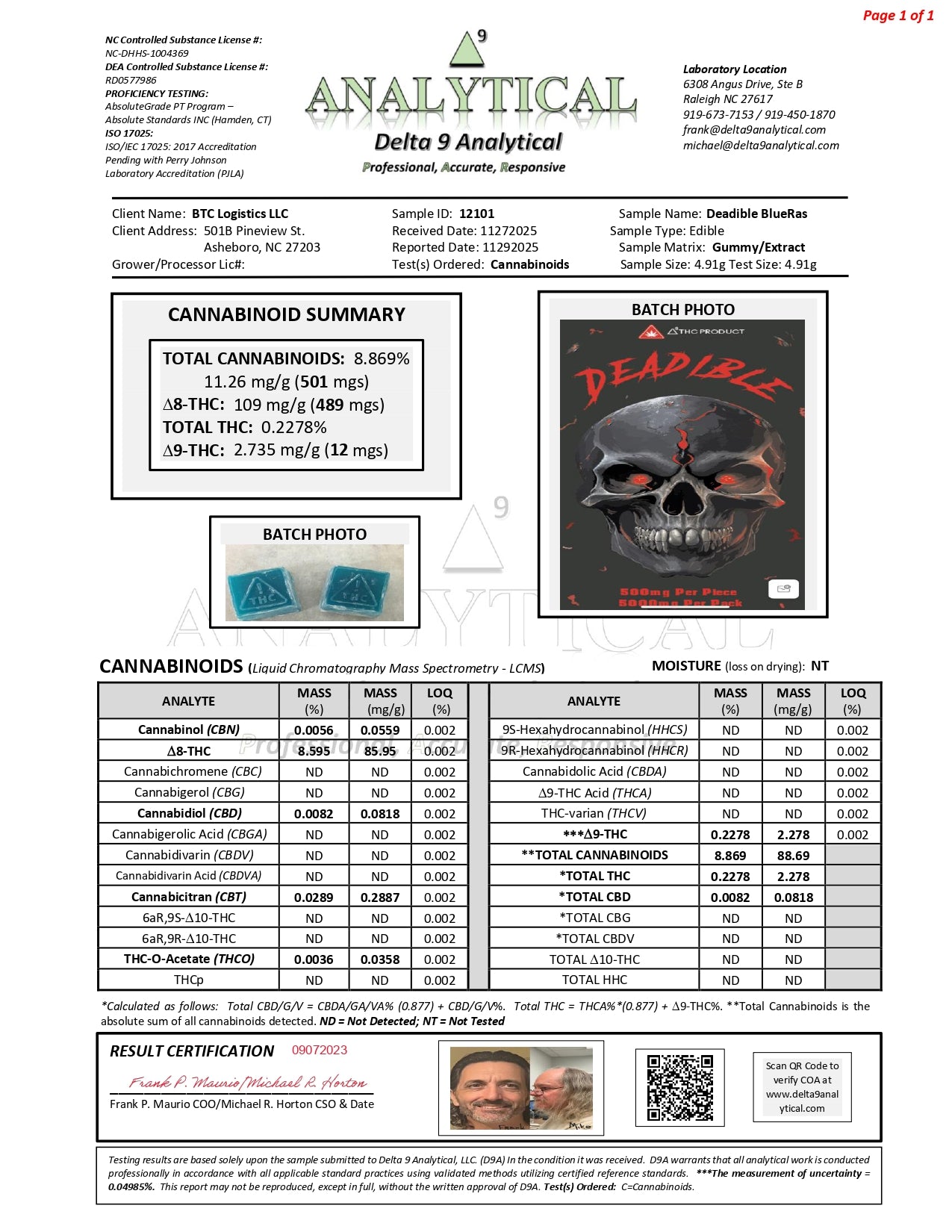 These results reflect testing on 1 of the 10 gummies from a randomly selected box. We complete multiple lab test with each and every bulk batch of gummies. We do this to ensure purity and overall top of the line quality control, with NO exceptions. If you have any questions feel free to use our contact page! As always thank you for choosing Deadible.