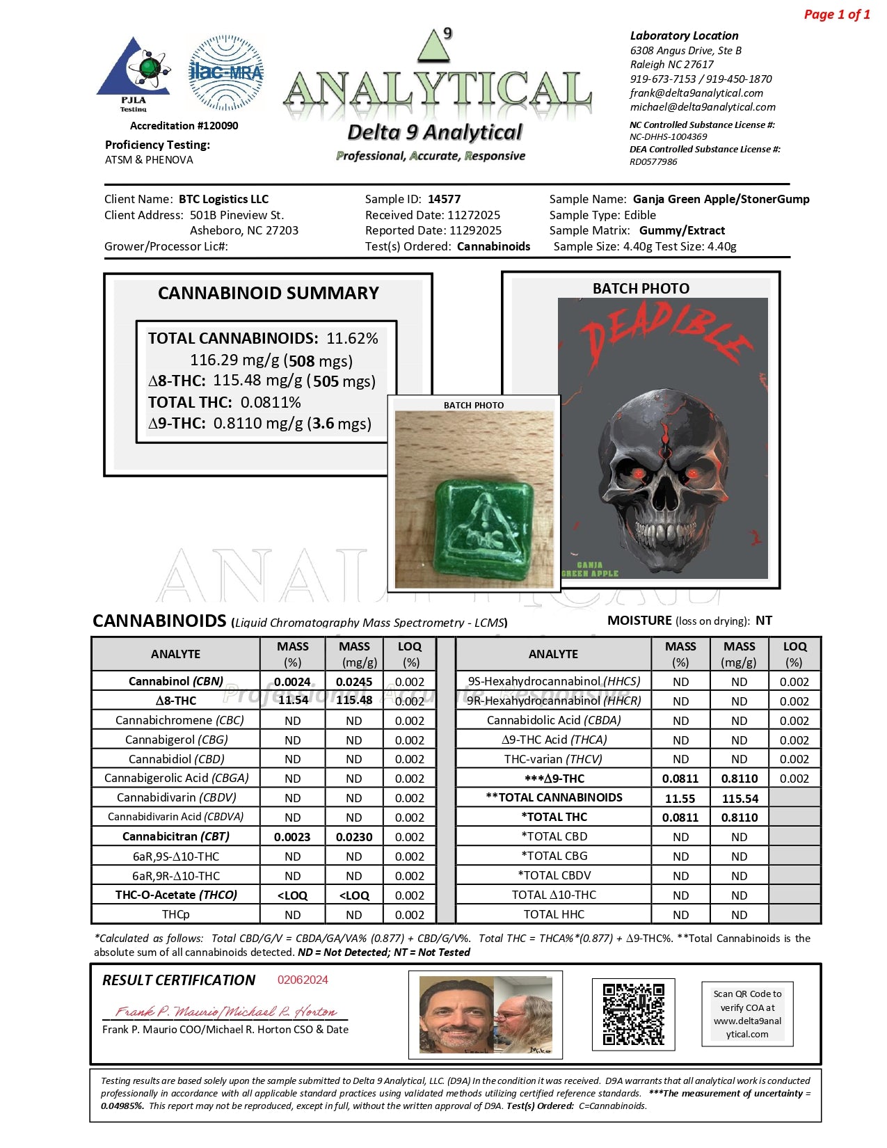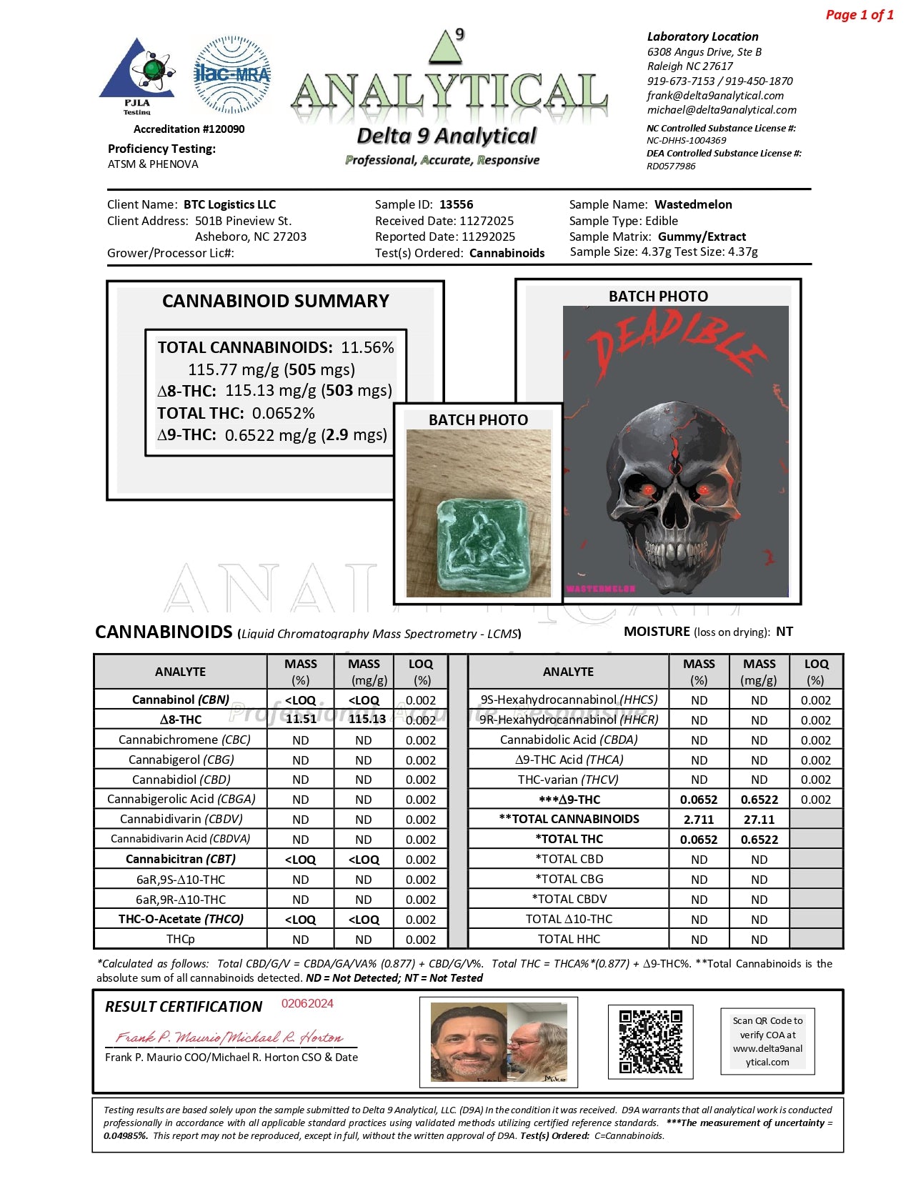 Certificates of Analysis (COA) for hemp and cannabis will show levels of cannabinoids and terpenes to analyze the strength of each individual gummy.