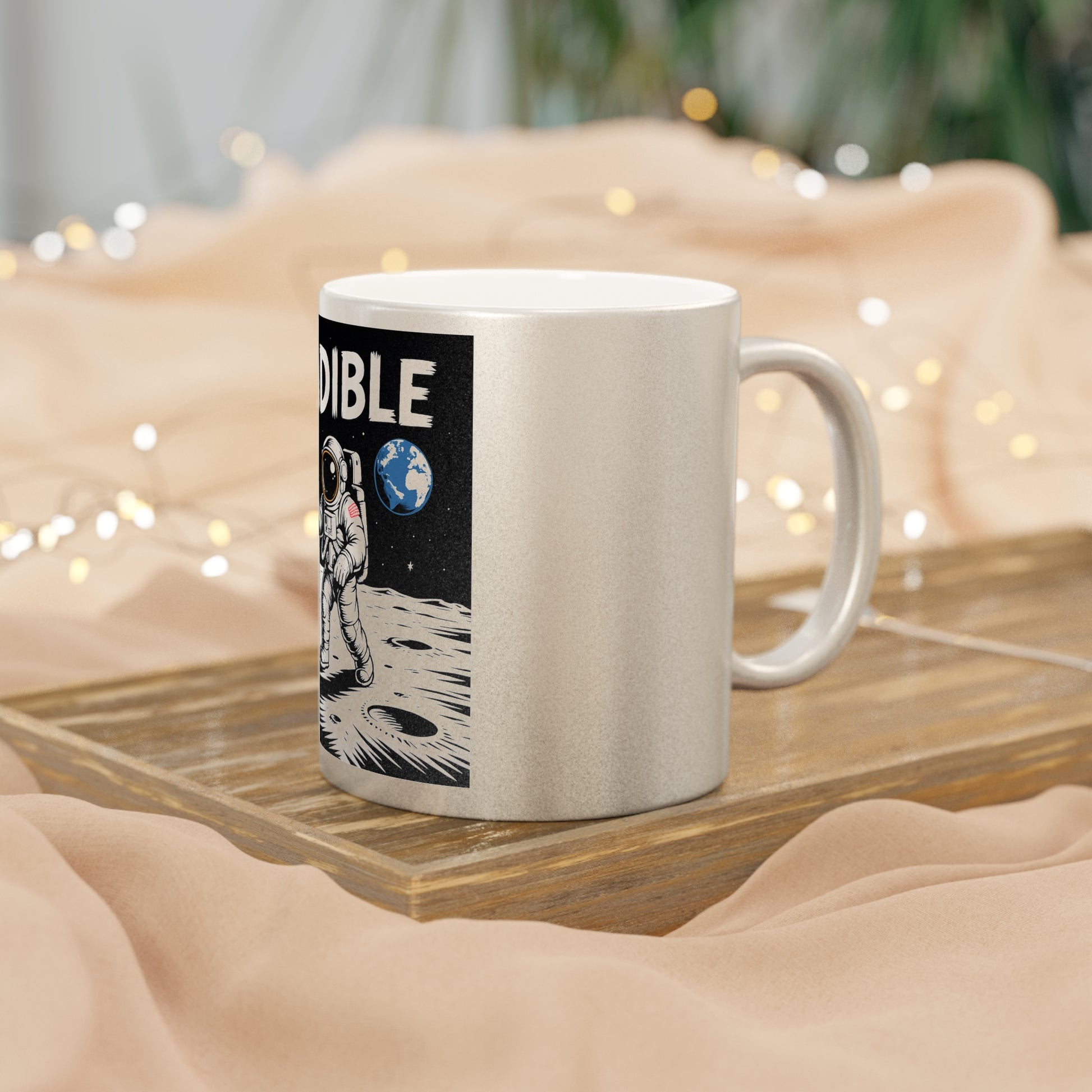 Silver or gold shimmer wraps this 11oz ceramic mug in a quiet, outer-space glow. A lone THCnaut plants a flag on the lunar surface while Earth hangs in the background.. Beautiful. The artwork reminds you, you made it through the journey. Hold it and you’ll notice the metallic coating catch the light, giving your morning coffee or evening tea a little interstellar flash. The mug’s C-handle fits comfortably in hand, and the BPA-, lead- and cadmium-free ceramic keeps your drink safe. Because of the metallic finish, lighter design areas may appear more transparent — a subtle imperfection that adds character and a handcrafted feel. Hand wash only to preserve the coating and keep that space-aged sheen shining.